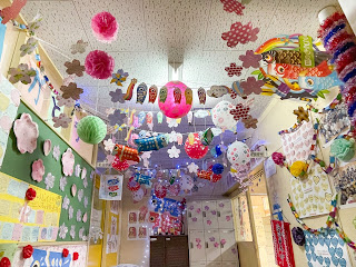 4月30日の給食は、子どもの日給食でした。今年は暦の関係で、少し早めに「子どもの日給食」をする事になりました。 子どもの日は、こどもの幸せを願う国民の祝日です。 5月5日に、こいのぼりや兜、菖蒲(あやめ)を飾ったり、菖蒲湯に入り、柏餅やちまきを食べ、厄よけと成長を祝う行事となっています。 今日は、給食でも柏餅を用意しました。 ※給食室の掲示では、こいのぼりがたくさん泳いでいます。子ども達も 喜んで見ていました。子ども達の幸せを願っています。