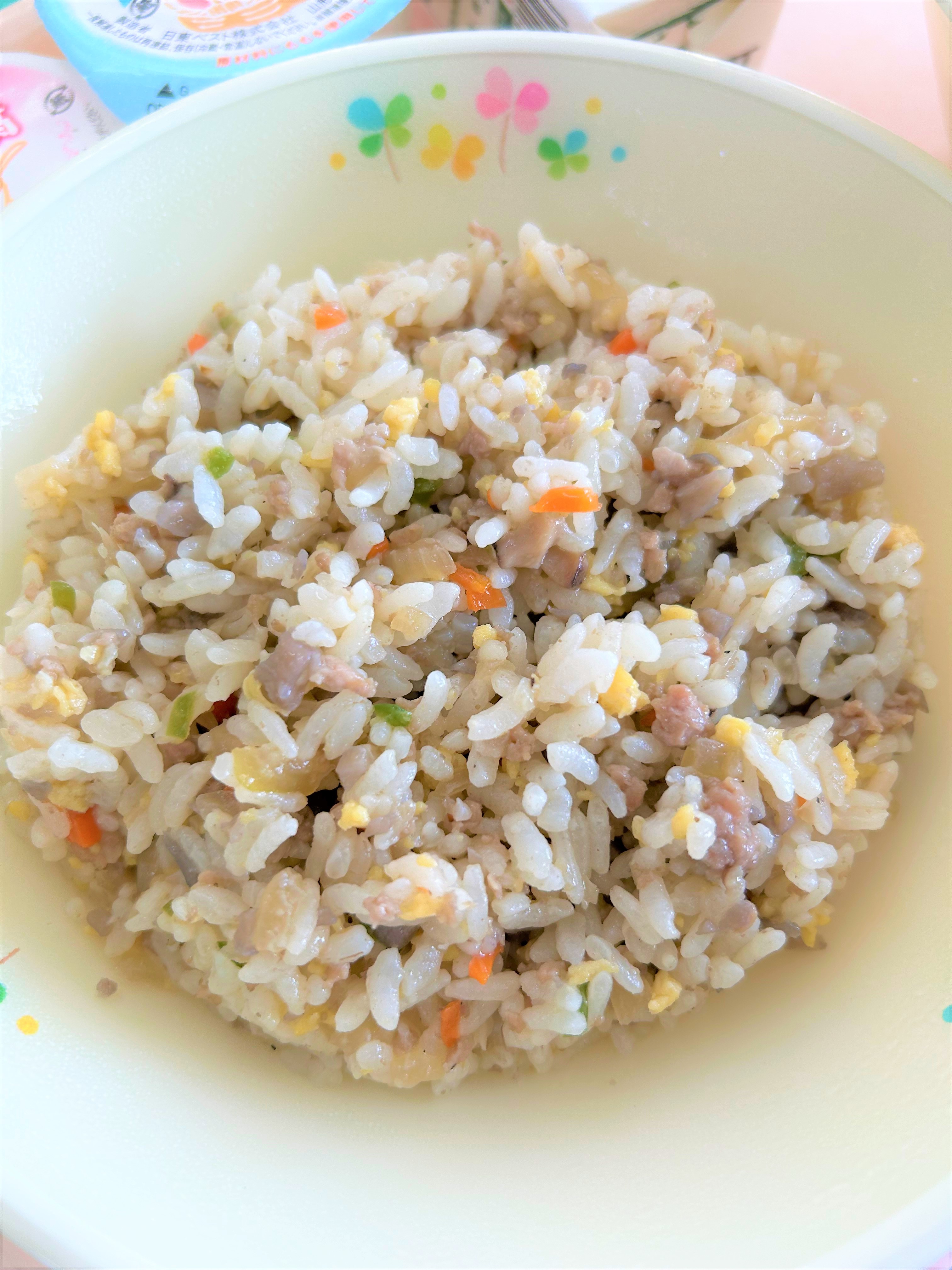 オススメの給食は、豚玉チャーハンです。豚ひき肉と卵をたくさん使ったチャーハンで、
